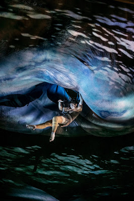Ainsi, la compagnie suédoise s’engage dans un travail politique autant que poétique. La performance n’est pas considérée en elle-même, elle sert un but intellectuel et moral. Le travail de recueil de témoignages qui a été fait en amont de cette création vient nourrir le spectacle : les images créées sont évocatrices des récits dont on entend sans cesse parler, qu’on ne peut ignorer ni éviter dans une société complètement surexposée aux vidéos, photos et divers reportages sur la question des migrants. Et qui cette fois, au lieu d’être montrés pour déclencher le choc et l’horreur, dans une perspective voyeuriste et sensationnaliste, sont esquissés par l’art, par l’intermédiaire de la poésie et par le prisme du cirque contemporain. La puissance des images invoquées, telle la suspension irréelle d’un corps de femme dans un gigantesque dispositif de draps suspendus à la verticale et à l’horizontale sont évocateurs d’une manière bien plus puissante de la réalité du voyage d’un corps humain dans l’eau, ici marquée par l’air, que ne pourrait l’être n’importe lequel des reportages ou des récits.