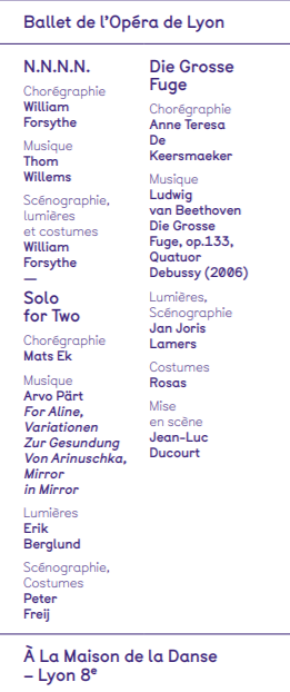 La Maison de la Danse a accueilli cette semaine l’ouverture de la saison du Ballet de l’Opéra de Lyon, des retrouvailles placées sous le patronage de trois figures majeures de la danse contemporaine : William Forsythe, Mats Ek et Anne Teresa De Keersmaeker.