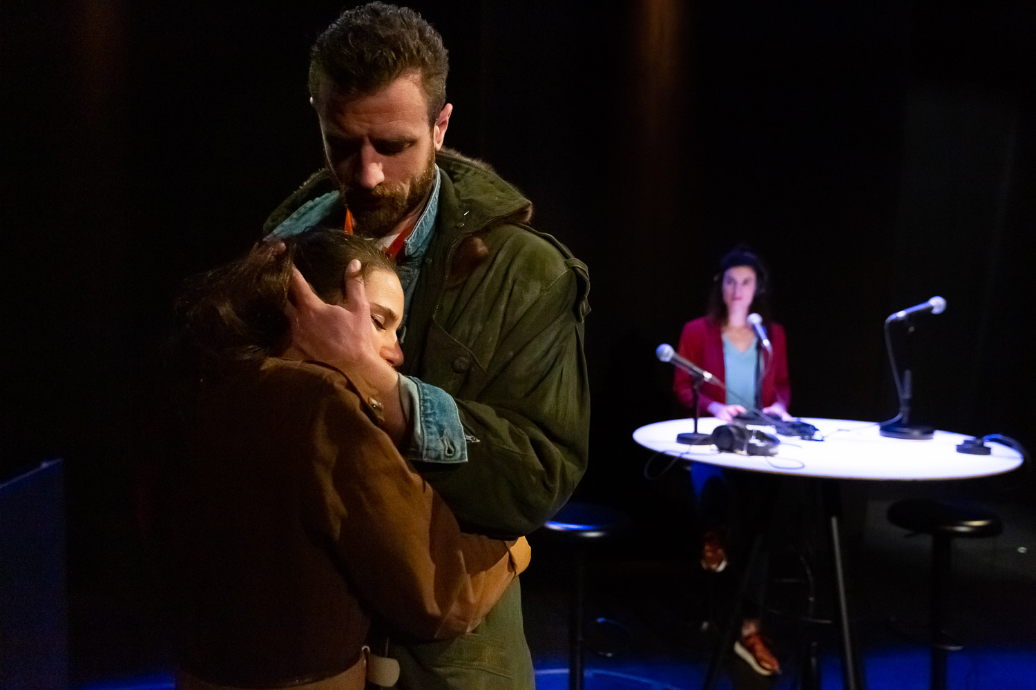 Dans le public, nous assistons muni·e·s de casques audio à cette émission en plusieurs épisodes consacrée au patriarcat et aux échos entre la mise en question du pouvoir des femmes d’hier et d’aujourd’hui. Alors que la présentatrice s’exprime dans un langage radiophonique actuel, les personnages de papier incarnés et invités le temps de cette émission entre deux mondes, continuent de lui répondre en alexandrins, selon un modèle classique.