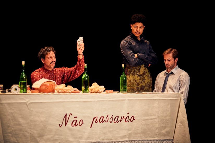 Posant alors la question de la légitimé de l’action directe incarnée par la mère qui a élevé sa famille à dessein de tuer « un fasciste tous les ans » contre le pendant réformiste ou militant incarné par Catarina, Tiago Rodrigues nous propose ici de prendre le temps d’écouter des points de vue sur les manières d’agir. Virulent, le long monologue de la mère prend position contre le vote inutile, la justice lente, pour la légitimé à employer la violence face à l’oppresseur qui nous y contraint par sa violence à lui. Cette longue diatribe prend place contre le gouvernement et sa complaisance quasi totale face aux discours haineux.