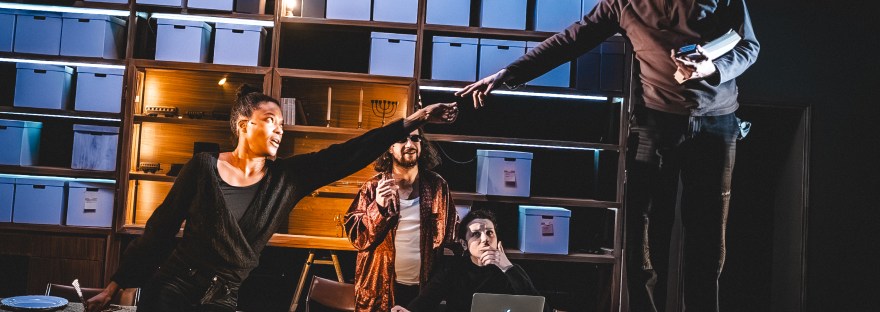 La pièce débute un soir de shabbat, nous sommes à table avec la famille de Rosa, notre protagoniste principale, metteuse en scène travaillant sur son nouveau spectacle. Sa mère trône sur un bout de table, et le père n’est plus là. Les membres de la famille semblent bien s’entendre malgré des querelles récurrentes et des personnalités très différentes. Au milieu de tout ça, Rosa part dans ses songes, elle est un peu « dans la lune » à certains moments. C’est aussi parce qu’elle est persuadée d’être habitée par un dibbouk – esprit malin d’un défunt qui hante un vivant dans la mythologie juive et kabbalisitique. Et d’ailleurs le voilà qui arrive son dibbouk… Il s’appelle Imre. Imre Kertész. Oui en personne. Il va rester là au plateau et commenter tout ce qui se passe, parfois d’un air las et suffisant, d’autre fois avec beaucoup de recul sur son vécu voire carrément blagueur. Rosa va discuter avec lui dans des sortes d’apartés qui construisent une réalité parallèle aux scènes de famille qui se déroulent sous nos yeux.